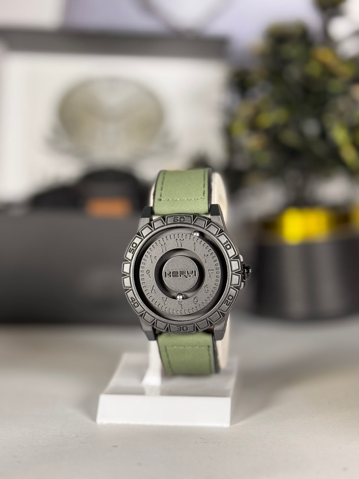 HERYI Grey Silicon Leather Strap Men’s Watch with Unique Circular Dial | Everyday Watch | Legalwears