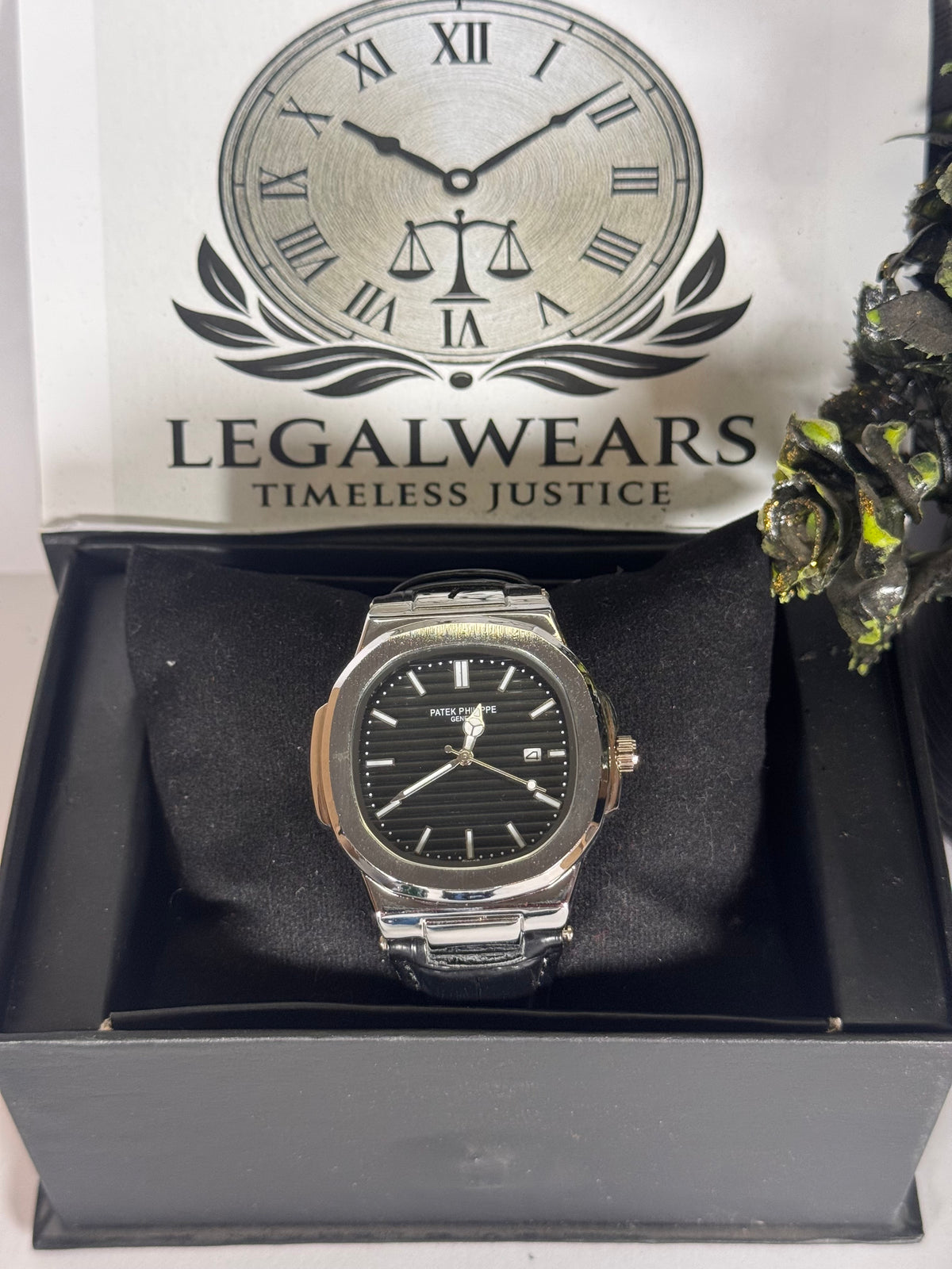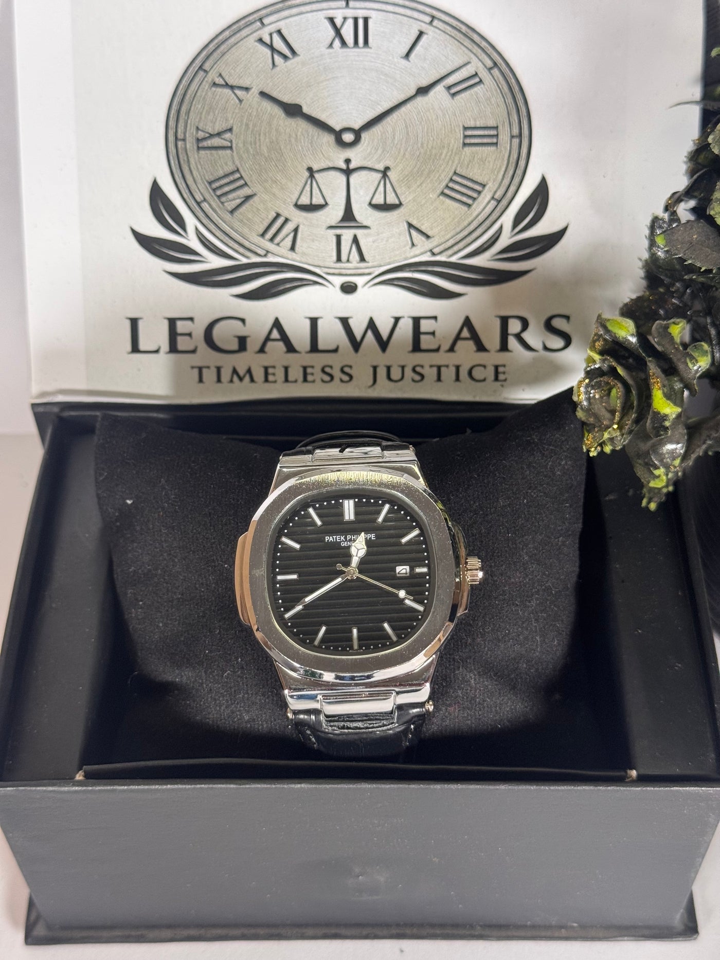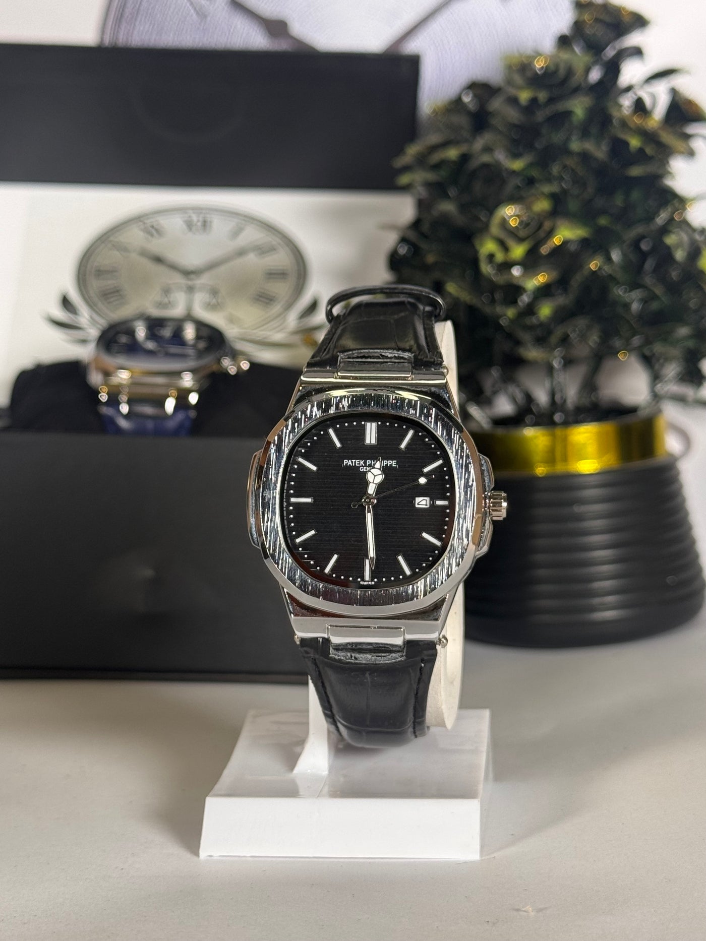 Patek Master Black Dial Men’s Watch with Leather Strap | Quartz Date Wrist Watch | Legalwears - Black / Black