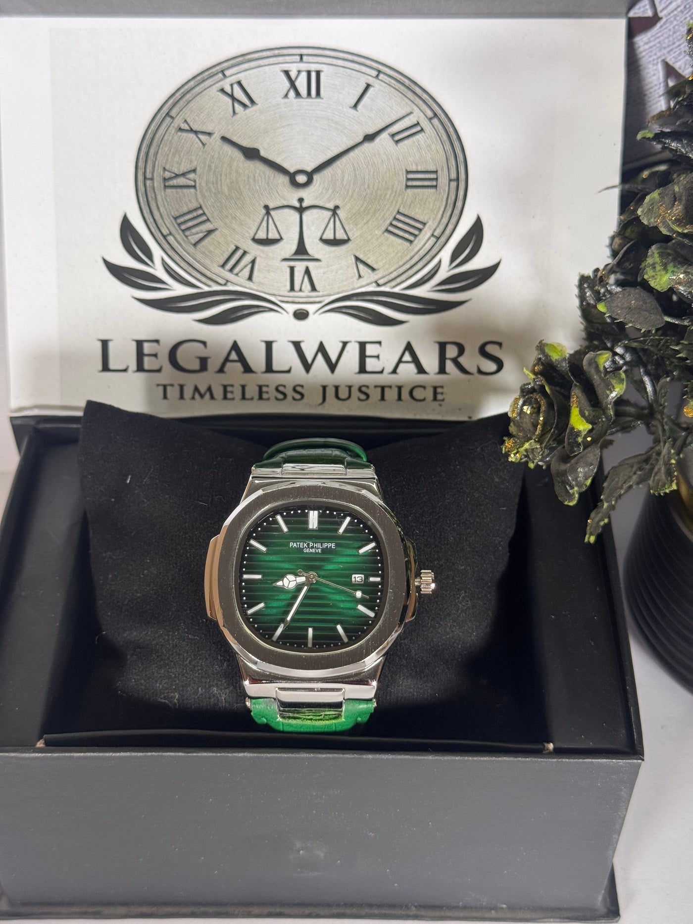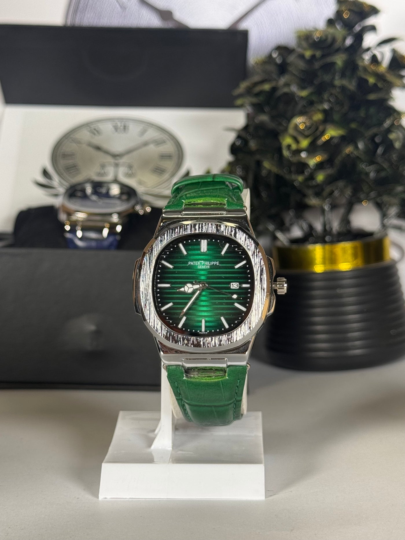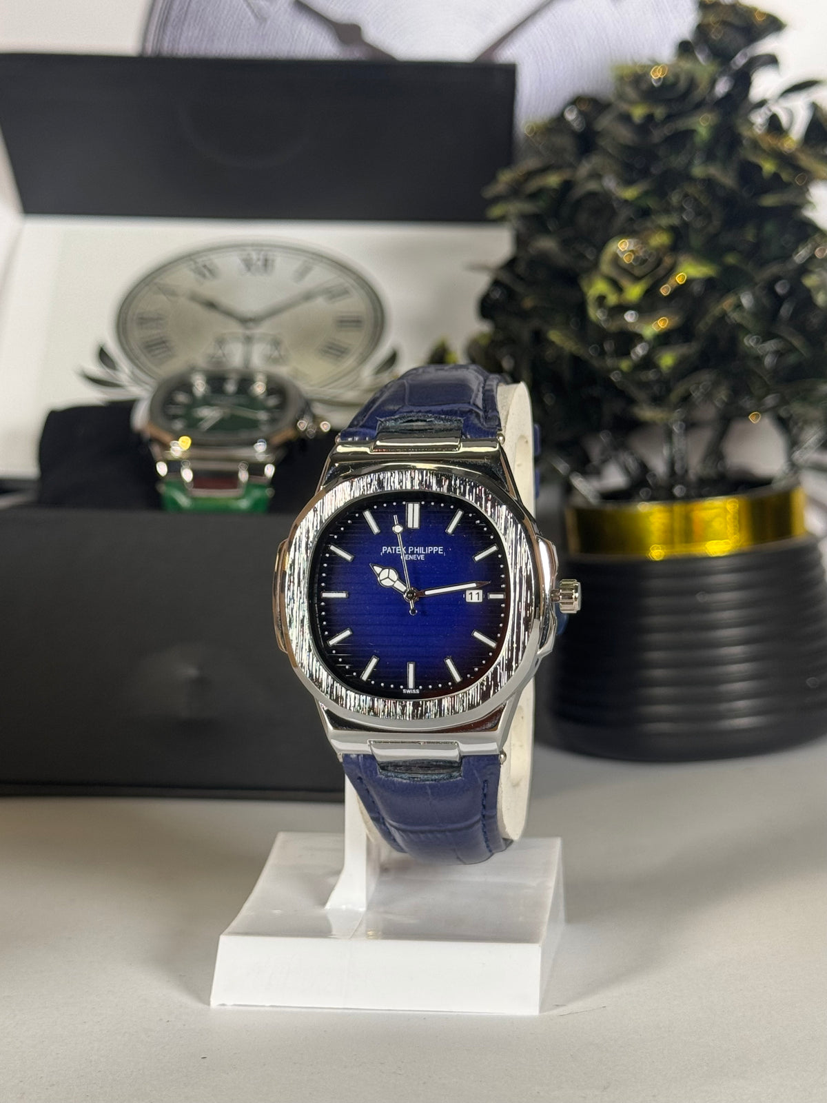 Patek Master Black Dial Men’s Watch with Leather Strap | Quartz Date Wrist Watch | Legalwears - Black / Black
