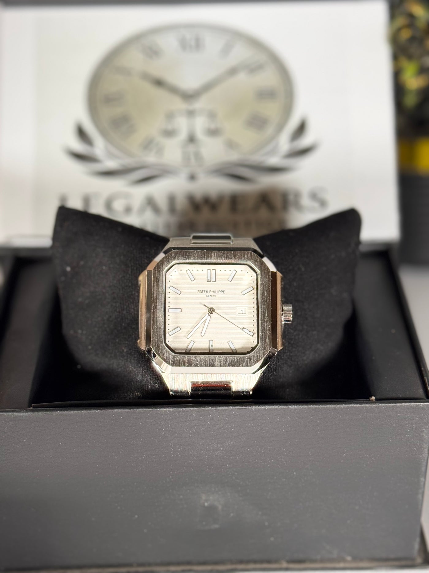 Patek Master Men’s White Dial Square Watch with Leather Strap | LegalWears - Black