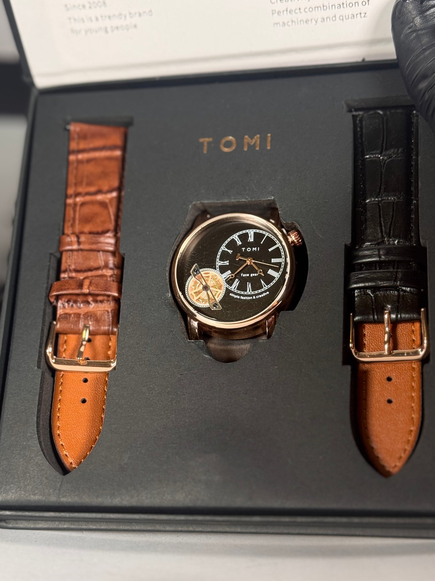 Legalwears Trendy Rose Gold Watch with Two Interchangeable Leather Straps – Black & Tan
